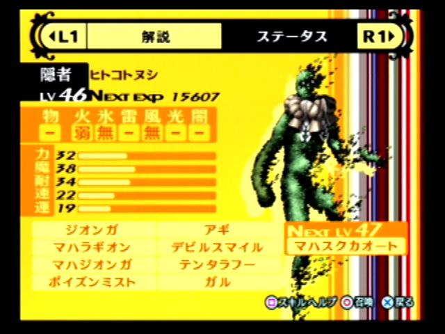 ・・・のはずだったんだけど、ここで問題が発生します。合体予報でノイズを消す必要があるのですが、ジオダイン、アギダイン、マハジオンガ、マハラギオンは既に埋まっているため、マハジオダイン、マハラギダインを習得させる必要があります。習得条件はレベル60以上であること。