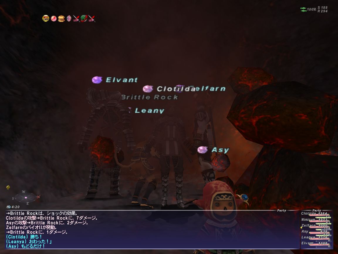 さすがに6人、あっさり5つの岩破壊完了です。INT100↑のアズさんスリップダメージが冴え渡ってました、1人で一個の岩壊しちゃうとか・・・!