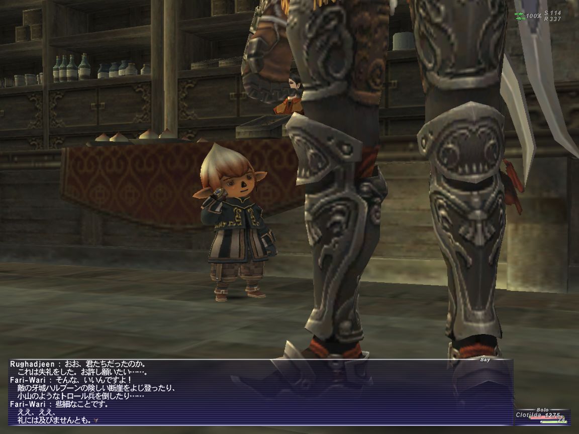 最近、アトルガンの五蛇将クエを進めています。受託条件は白門K-12のFari-Wariに話すだけ。簡単なお使いクエで黄金貨を報酬にもらえたりして。