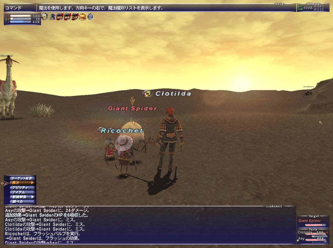 アズさんと二人で、砂漠で指輪経験値消化、からくり&青のコンビ。