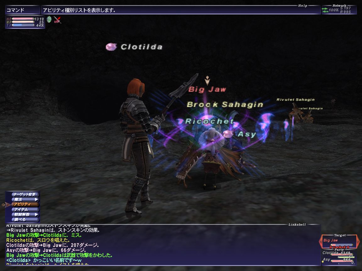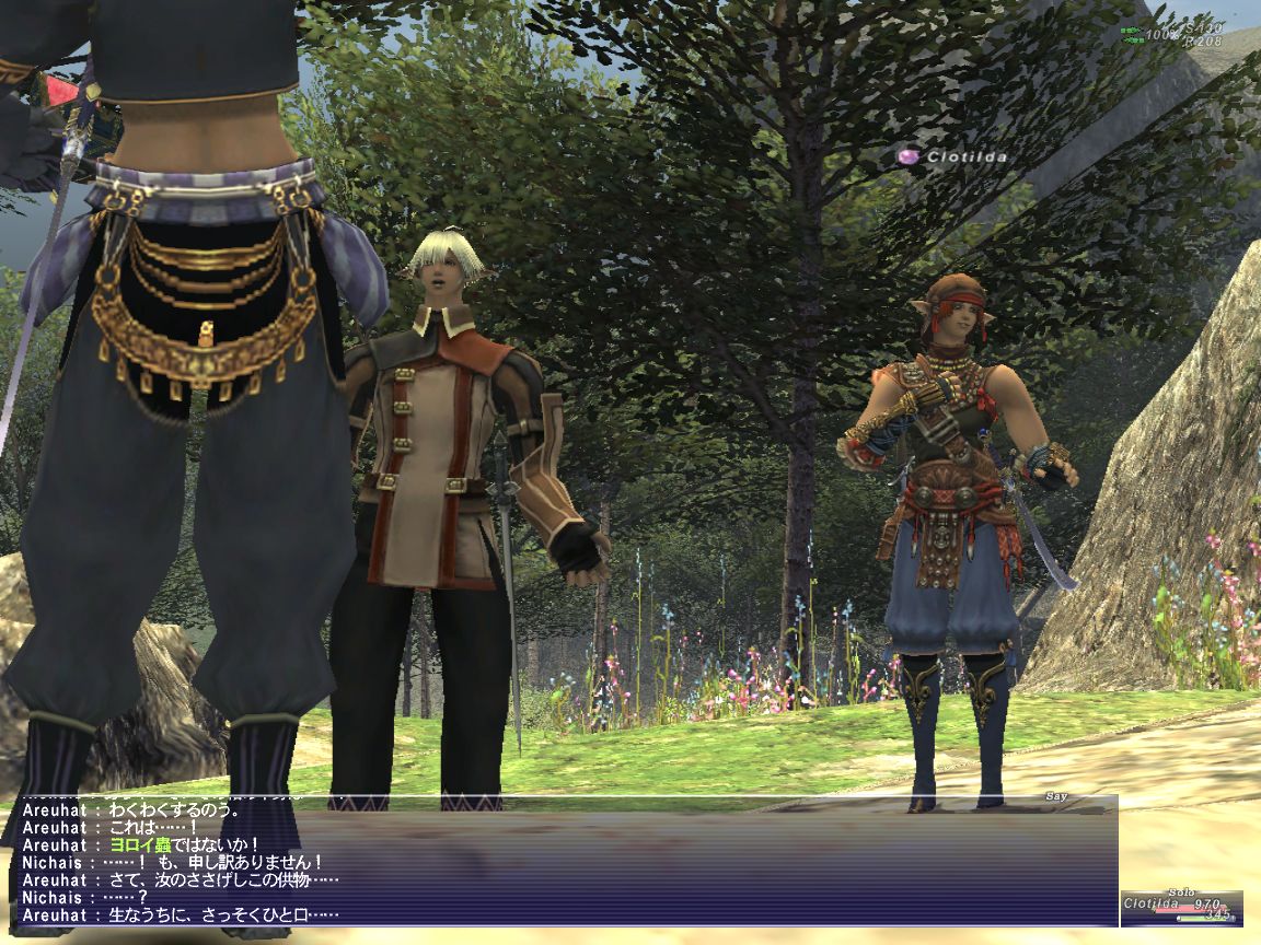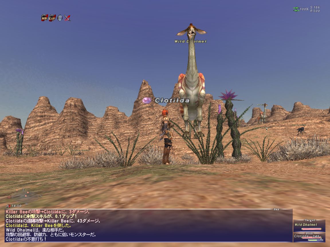 ちなみに、過去サンドのクエ「美女と野獣」のヒトコマ。用意するのはヨロイ蟲一個(競売でダース500くらい)と、過去サンド←→グロウベルグを何度も往復するガッツだけです。
